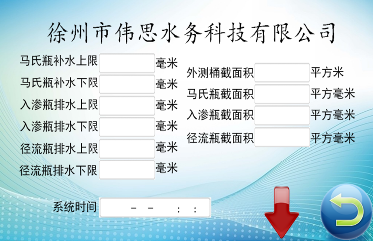 2、地表凈流量檢測(cè):當(dāng)外部降水量較大未進(jìn)入土桶入滲而經(jīng)外部管道進(jìn)入地表凈流桶后,地表凈流桶內(nèi)水位上升,桶中的浮子傳感器將測(cè)到的水位變化量傳給采集器,采集器處理后顯示為地表凈流量。