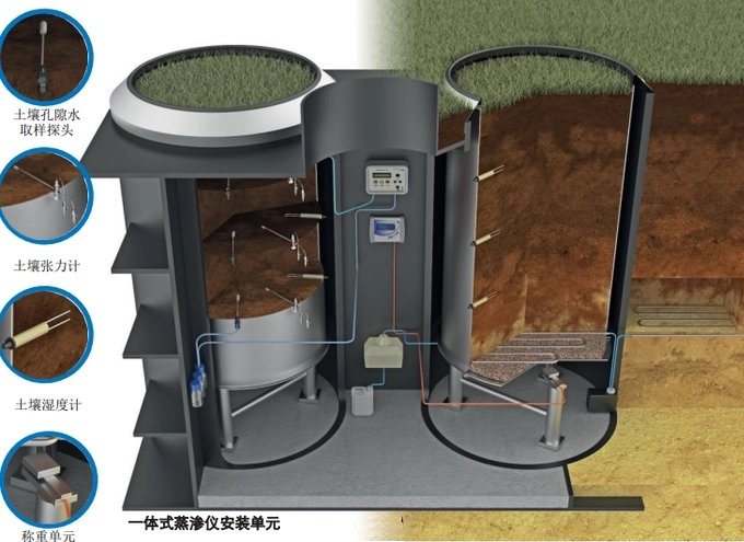 1. 一體式土壤蒸滲儀是由蒸滲儀柱體、稱重系統(tǒng)、數(shù)據(jù)采集系統(tǒng)、土壤水文測(cè)量單元、抽樣系統(tǒng)及系統(tǒng)維護(hù)等構(gòu)成,該系統(tǒng)都集中在一個(gè)緊湊、堅(jiān)固且環(huán)保的蒸滲儀室內(nèi),便于安裝運(yùn)輸;